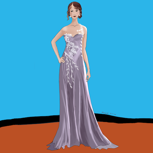 I love the pastel purple color, the white floral embroidery and the elegant one-shoulder design. I spent the weekend sketching it, and I'm really happy with how it turned out!