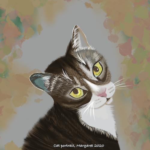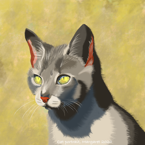 Painting cat portraits turned out to be so hard…again painting the eyes were my favorite because they are so expressive; and painting the fur was the most challenging part – I spent days to get it right.